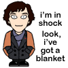 (譯)我都已經受到驚嚇了,你看,我還拿到毯子了。